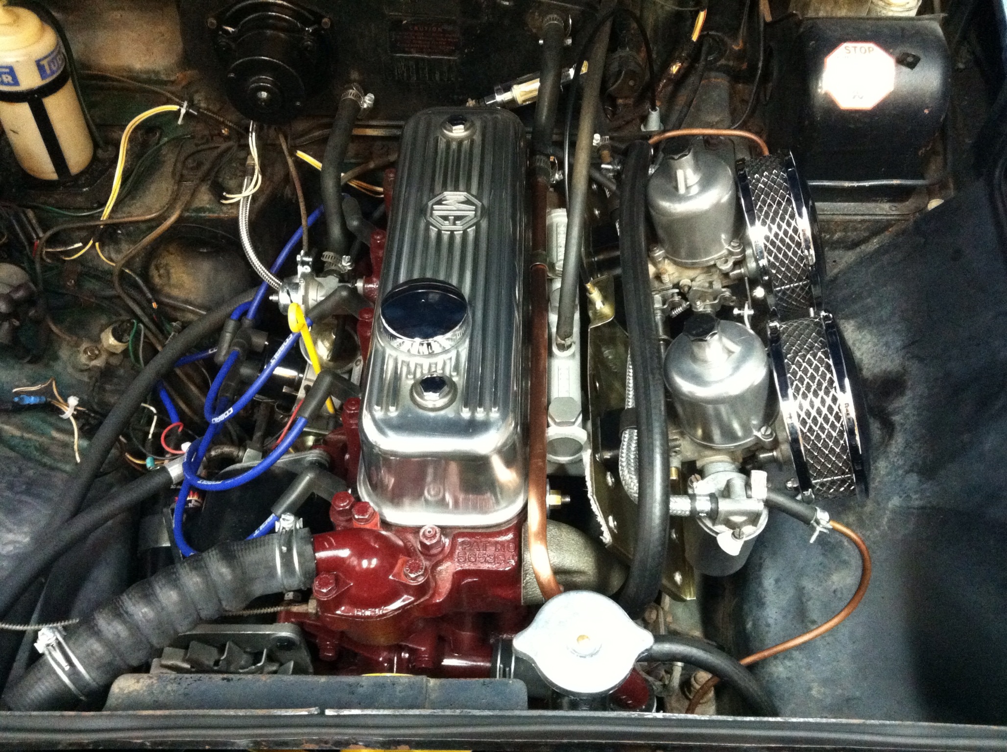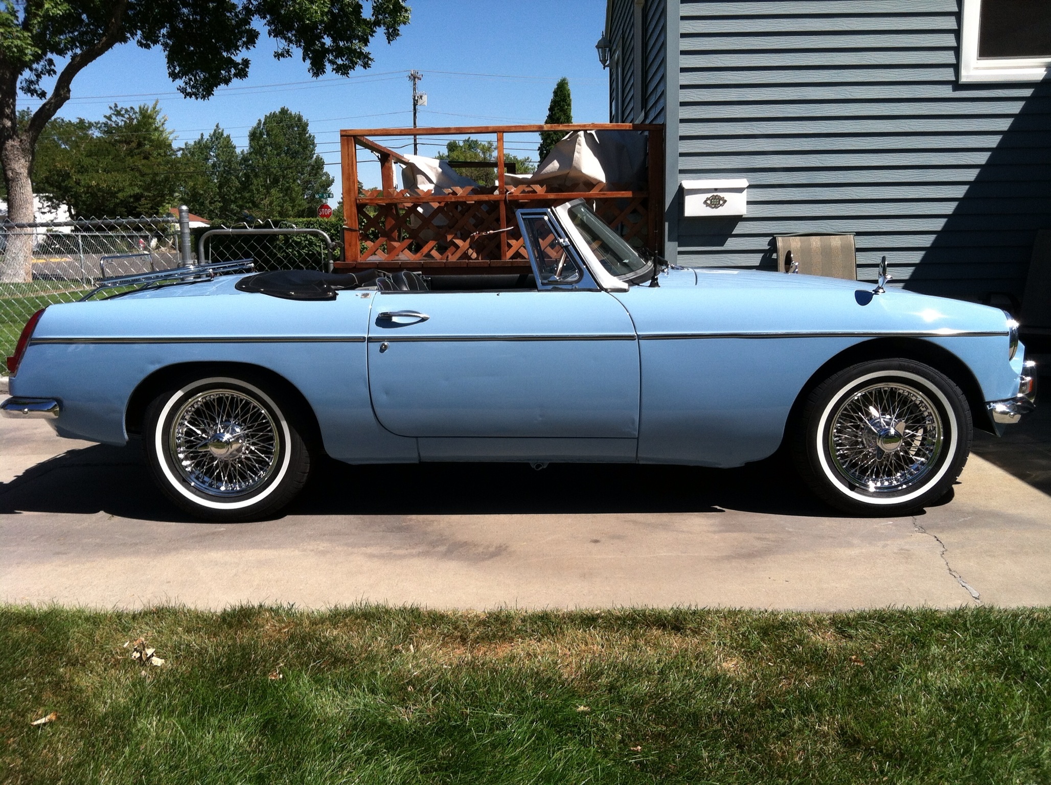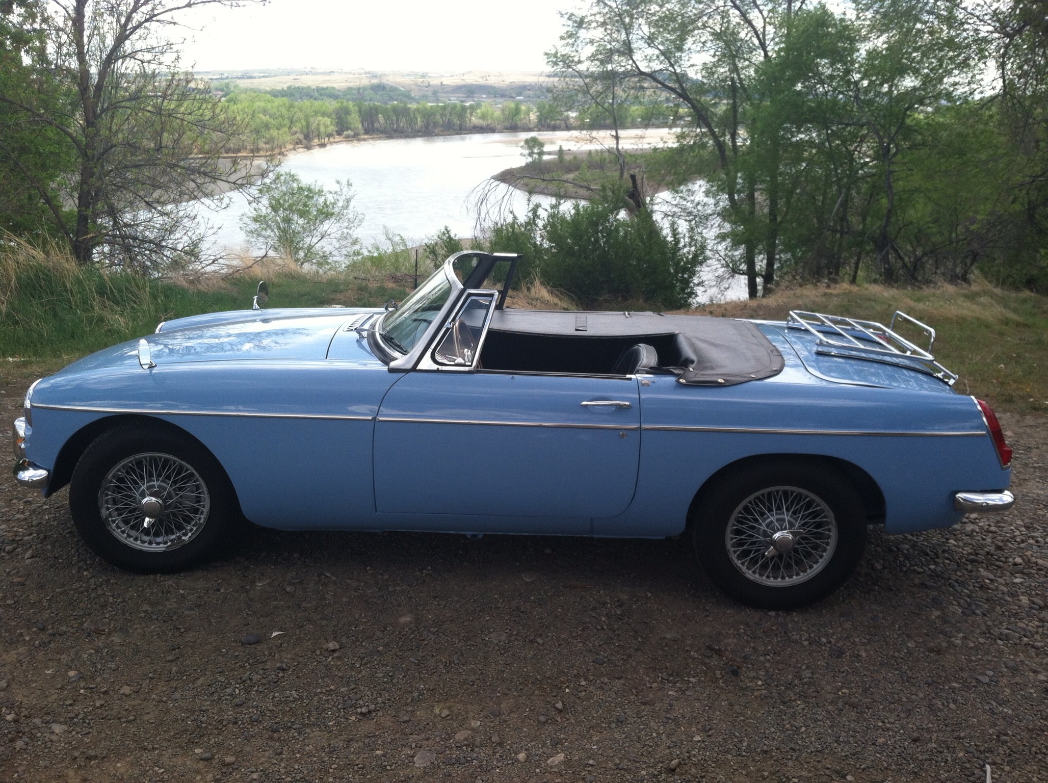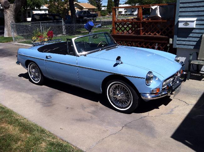 1964 MGB Roadster, chrome knock-offs, O/D, Iris Blue, 91,000 original miles.